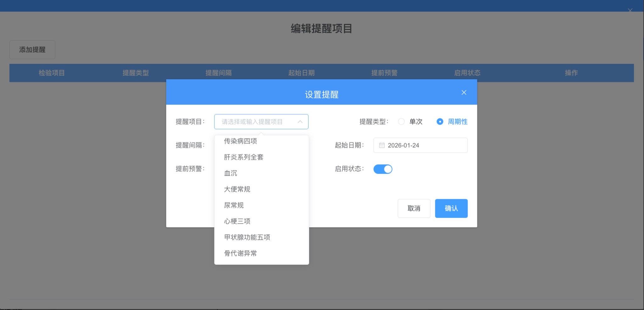 化验提醒模块